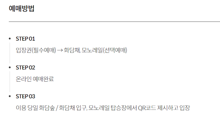 -입장권,화담채,모노레일은 현장발권이 불가하므로 꼭 온라인 예매해야 합니다.